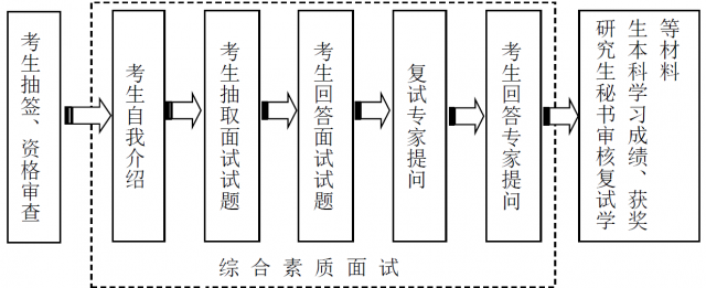 4、专业课笔试 专业课笔试由江西财经大学研究生院统一组织,总分为100分,考试时间3小时。考试时间:3月28日上午8:30-11:30。 5、英语听力、口语测试 由外国语学院负责,总分为50分,时间由学校统一安排。 6、综合素质面试安排 时 间:2021年3月30日(周二)9:00 -12:00 地 点:蛟桥园南区综合楼11楼第一会议室 面试专家:提前一天从院招生复试综合素质面试专家小组中随机抽取5人 面试流程(面试过程录像录音):