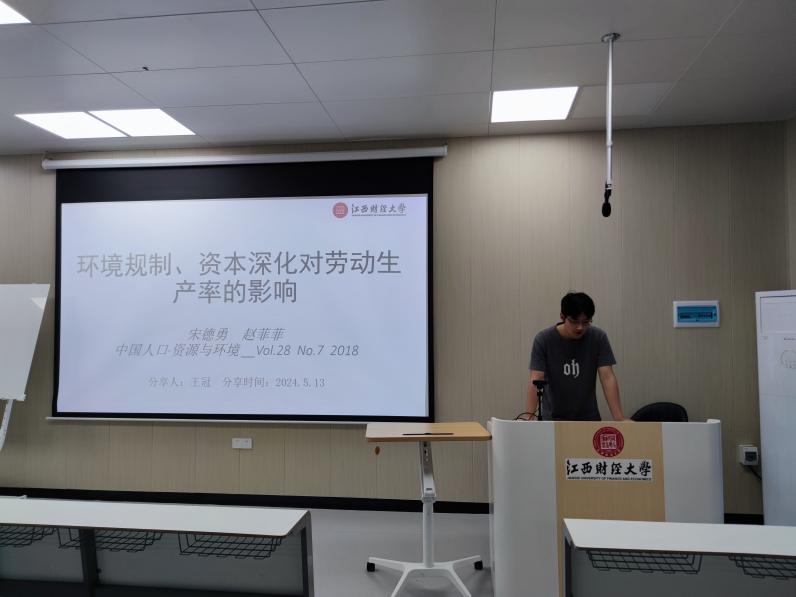 第一位进行文献分享的是王冠同学,他分享的文献选自《中国人口·资源与环境》2018年第7期,题为“环境规制、资本深化对劳动生产率的影响”。文章采用中国 35 个行业2005—2015 年的面板数据,并根据环境规制强度的差异将行业划分为三大类,探讨在行业污染密集程度存在差异的背景下环境规制对劳动生产率的影响,并以资本深化水平为中介变量,扩展分析资本深化水平对于环境规制影响劳动生产率的门槛效应。