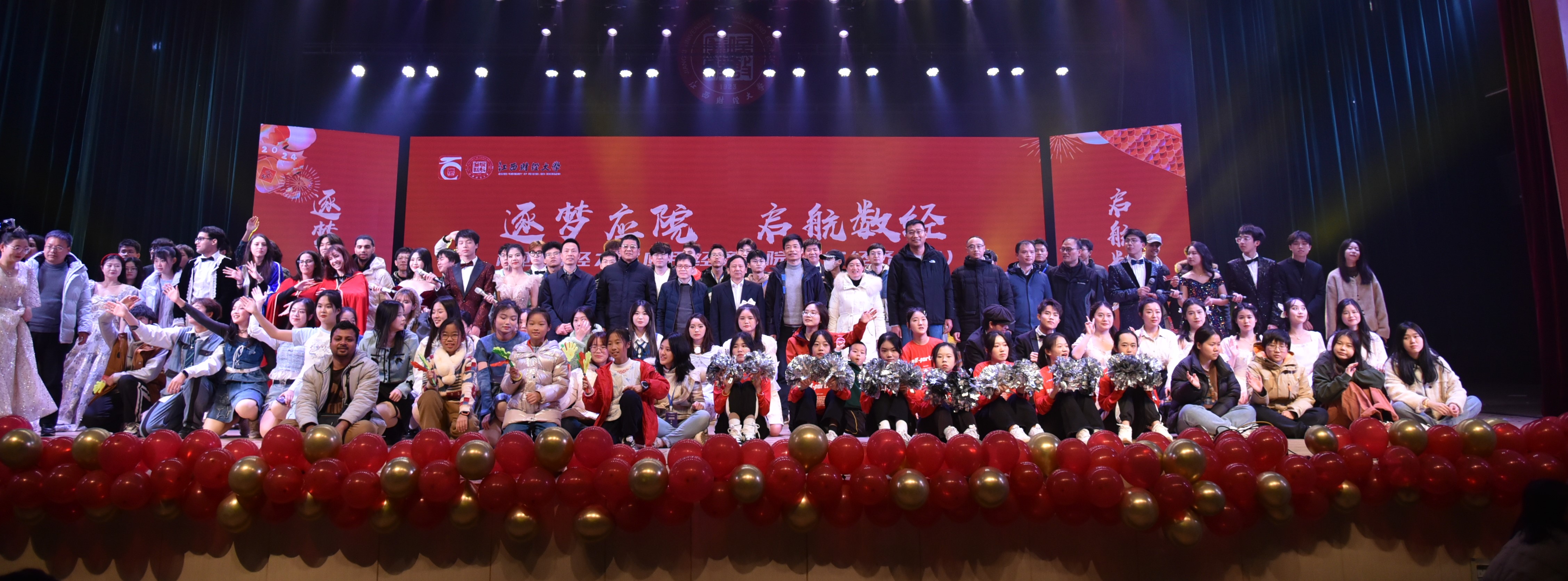 出席晚会的嘉宾有江西财经大学党委书记卢福财教授、我院院长谢花林教授、产业经济研究院院长王自力教授、规制与竞争中心主任陈明教授、我院副院长王守坤教授、习明明教授、舒成教授、我院党委副书记曾爱英和学院老师们。他们的光临为整个晚会增添了崇高的氛围。首次举办的大型晚会为观众带来了一场独具特色的文艺盛宴。从舞台设计到表演编排,每一个环节都展现了精心策划与组织的成果。