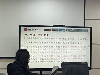 此次答辩过程分为答辩人阐述、评委提出问题与建议、答辩人回答问题以及答辩秘书统计答辩结果四个环节。首先,答辩人结合PPT对自己的硕士毕业论文进行简要阐述,答辩时间不超过分10分钟。接着,答辩委员会专家在听取答辩学生的阐述后,针对论文的创新点、研究内容、研究方法、研究结论及总体框架等方面提出问题。然后,答辩人经过认真思考后,针对性地对专家们提出的问题进行解答,并对专家们的建议表示感谢。最后,经过答辩委员会表决,答辩秘书统计答辩结果。