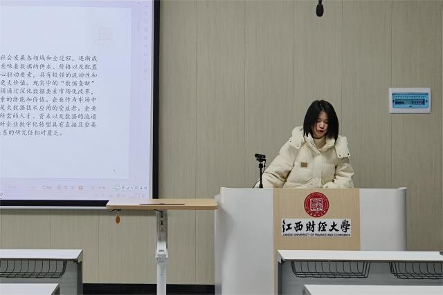第三位进行文献分享的是潘倩同学,她分享的文献选自产业经济研究2023年第2期,题为“数据要素市场化如何驱动企业数字化转型?”。文章将各地数据交易平台的建立作为数据要素市场化的准自然实验, 基于2011—2021年中国上市公司数据,采用渐进式双重差分模型考察了数据要素市场化对企业数字化转型的影响。研究发现:数据要素市场化有效驱动了企业数字化转型,并且随着企业数字化转型的不断深入,这种驱动效果呈现边际递减特征。