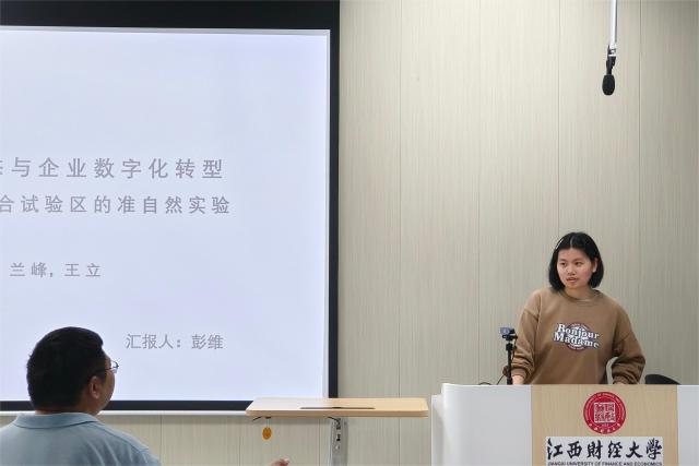 第一位进行文献分享的是彭维同学,她分享的文献选自中国工业经济2023年第9期,题为“政策赋能、数字生态与企业数字化转型——基于国家大数据综合试验区的准自然实验”。文章基于2009—2019年中国上市公司面板数据,以2016年设立国家大数据综合试验区作为准自然实验,从数字生态视角考察以大数据为基础的区位导向性政策对企业数字化转型升级的影响。文章结论不仅有助于深化理解以大数据试验区为代表的数字产业政策对新时代中国数字经济发展的作用效果,也为地方政府借助大数据试验区充分发掘数据要素价值、把握数字经济发展新机遇、拓展经济发展新空间提供了政策支持。