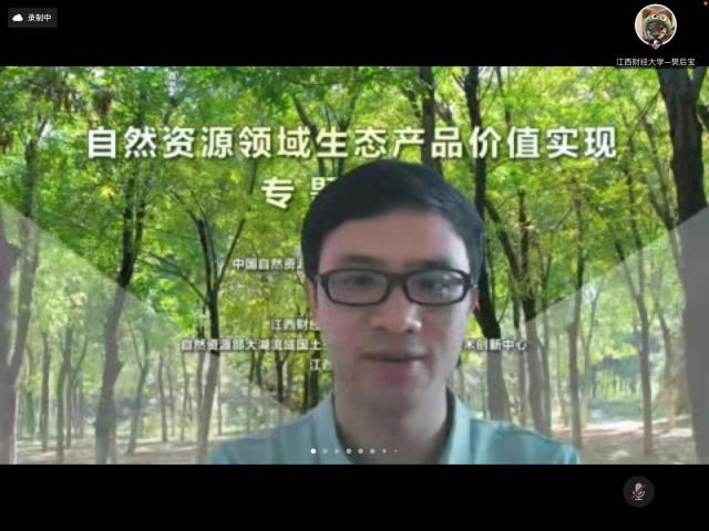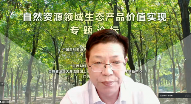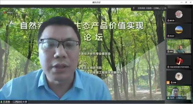2022年9月24日(周六)上午,由中国自然资源学会资源经济研究专业委员会主办,江西财经大学生态文明研究院、自然资源部大湖流域国土空间生态保护修复工程技术创新中心、江西省生态学会承办的“自然资源领域生态产品价值实现”专题论坛通过线上会议和直播相结合的方式顺利召开,本次论坛得到了中国自然资源学会、《自然资源学报》、北京大学、中国自然资源经济研究院和江西财经大学的大力支持及国内外大学、研究机构和政府部门的积极响应。